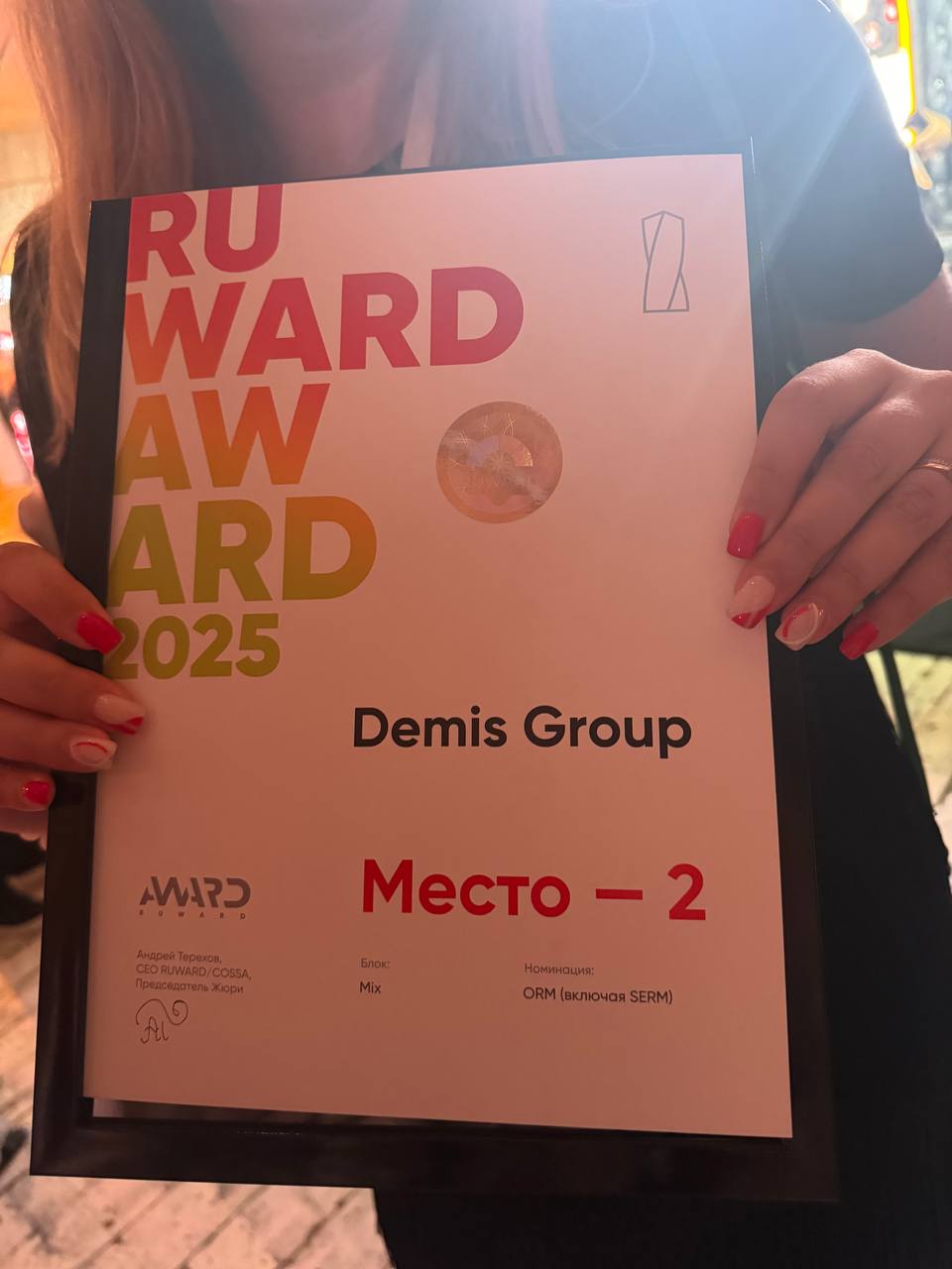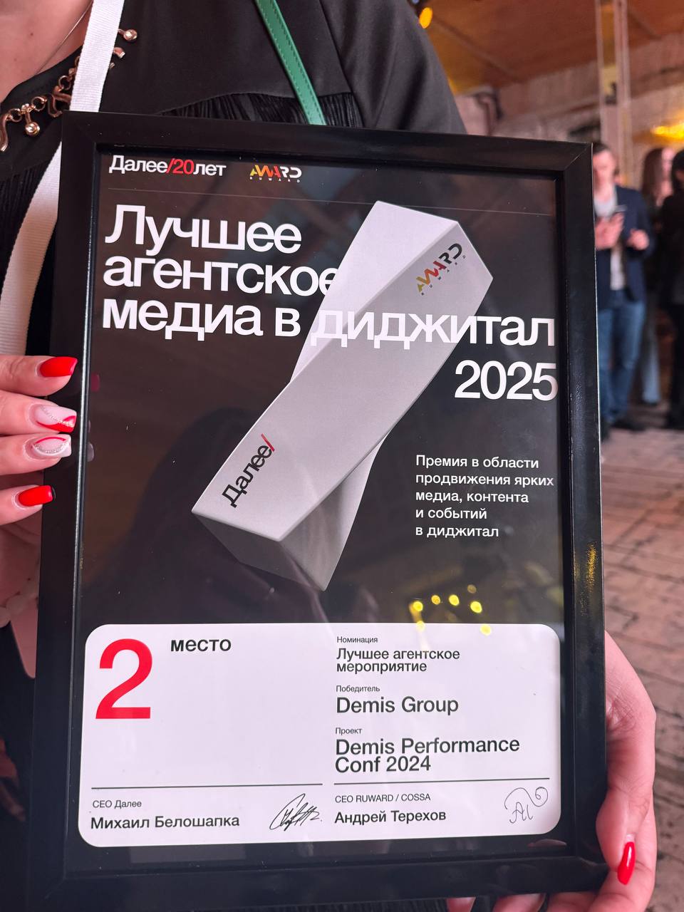 2 место в номинации «Лучшее агентское медиа в digital» — за кампанию вокруг Demis perFORMANCE Conf 2024. Это была не просто конференция, а мощный медиапроект про человекоцентричный маркетинг. 5,5 тысяч участников, 150 спикеров, 47 миллионов охвата — всё это результат слаженной работы команды.