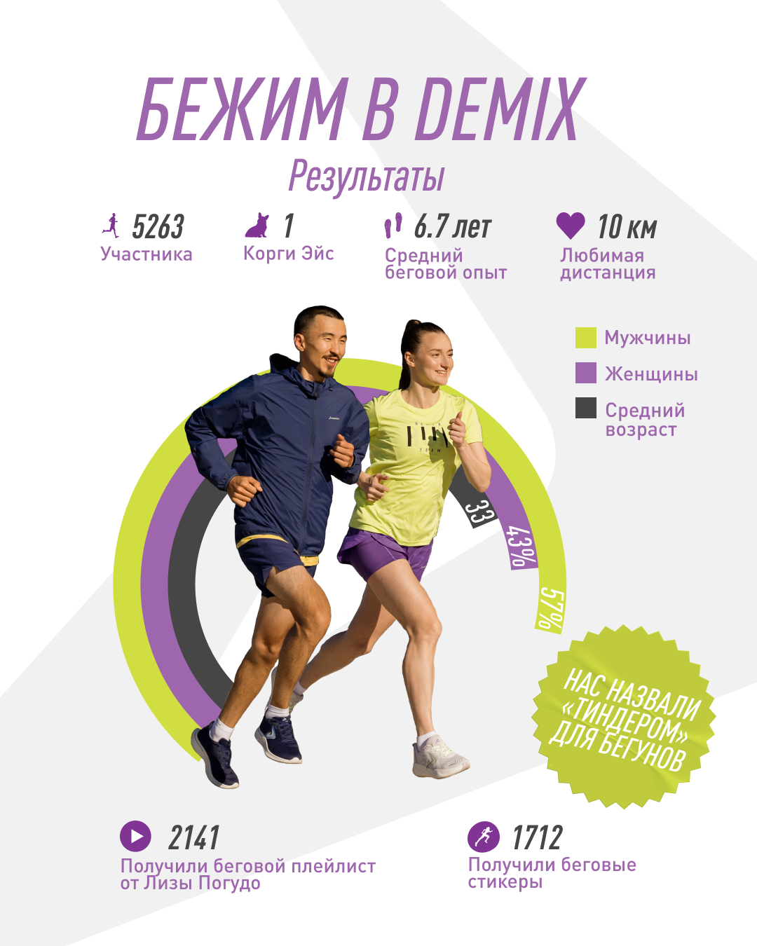 Чуть меньше двух месяцев назад бренд спортивной одежды Demix вместе с агентством Resonance и изданием Sports.ru запустили кампанию по поиску новых амбассадоров. С помощью чат-бота в Telegram команде удалось собрать более 5000 заявок. В топ вошли вдохновляющие спортсмены, которых объединяет искренняя любовь к бегу и к Demix.