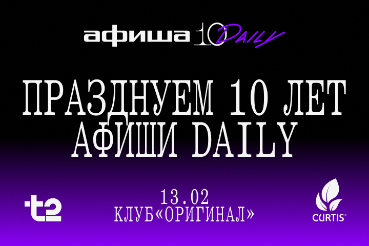 13 февраля 2026 года «Афиша Daily» отмечает первый серьезный юбилей – 10 лет со дня запуска сайта – и зовет читателей и друзей издания на день рождения. Мероприятие под названием «Любовь как вечный двигатель» пройдет в клубе «Оригинал». Дата выбрана специально перед Днем влюбленных, чтобы напомнить про другие, не менее ценные чувства и отношения: дружеские, фанатские, рабочие, творческие и, конечно, с самими собой.