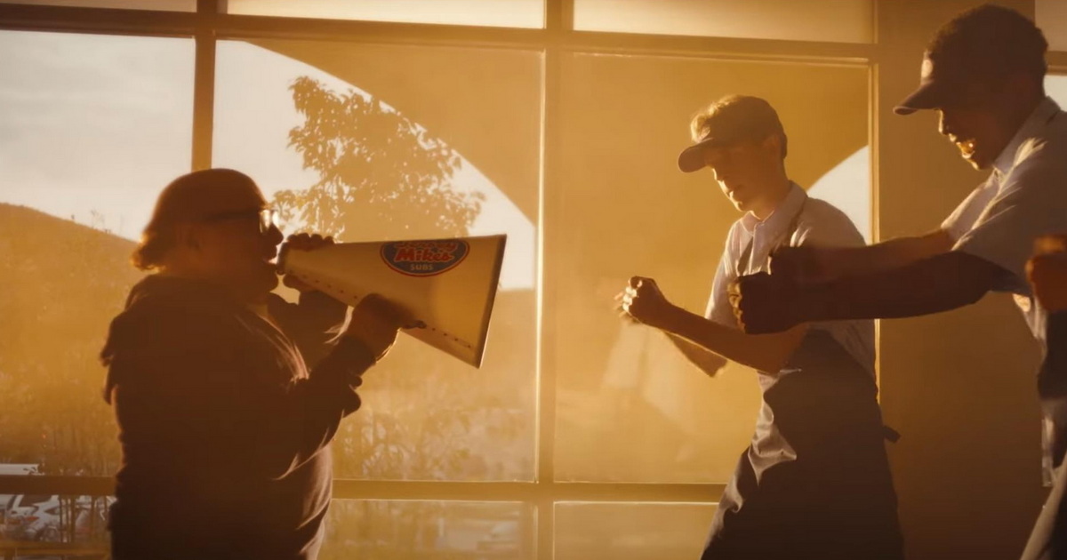 Рекламный клип «Arm of The Slicer» вышел 7 марта 2023 года на YouTube-канале Jersey Mike’s. В динамичном ролике Дэнни Де Вито выступает в ироничной роли тренера команды закусочной. Персонал ресторана под бодрый мотив режет колбасы, бекон, зелень и затем собирает из всех этих ингредиентов и багета сэндвич. Свое название «Arm of The Slicer» реклама получила не случайно. Все действие клипа происходит под кавер-версию хита Eye of the Tiger американской группы Survivor. Песня была написана в 1982 году по просьбе Сильвестра Сталлоне для фильма «Рокки 3» и после премьеры картины на шесть недель обосновалась на первом месте Billboard Hot 100. Именно под эту песню в фильме проходят изнурительные тренировки главного героя — боксера-тяжеловеса Рокки Бальбоа, которого и играет Слай. К знаменитой кинофраншизе также отсылает и сцена из рекламного ролика, где персонал закусочной под руководством тренера Дэнни пилит бревно. Именно этим и занимается Рокки, когда готовится выйти на ринг с непобедимым, а как выяснится впоследствии вовсе и нет, советским боксером Иваном Драго, роль которого сыграл Дольф Лундгрен.