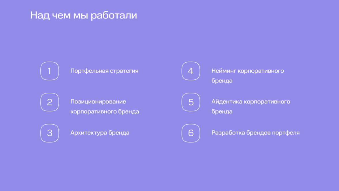Стратегический брендинг в категории — это не про креатив, а про структурное осознание взаимовлияния и органичной работы стержневых ценностей, которые помогают приоритезировать работу всех основных подразделений холдинга, от product owners и аналитиков, до маркетологов и продающих команд. Одновременно, это стратегия, которая наиболее полезна для решения задач investor relations и HR. Именно такую стратегию и архитектуру бренда мы предложили в результате работы — гибкая, удобная структура, помогающая настраивать корректный тон и характер коммуникаций, смыслы и образы для широкого спектра аудиторий.