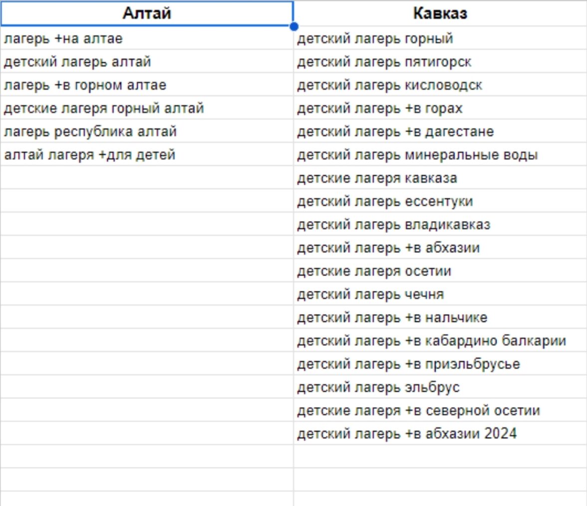 Настроить рекламные кампании на Лагерь на Кавказе.