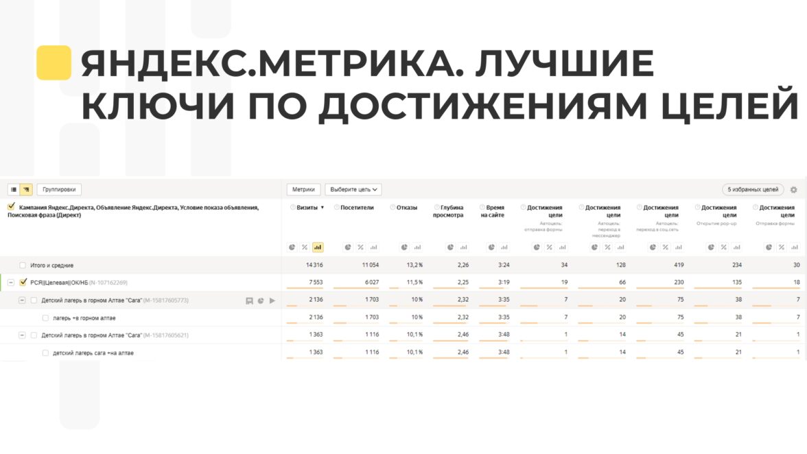 Оптимизировать рекламные кампании на целевые действия на сайте.