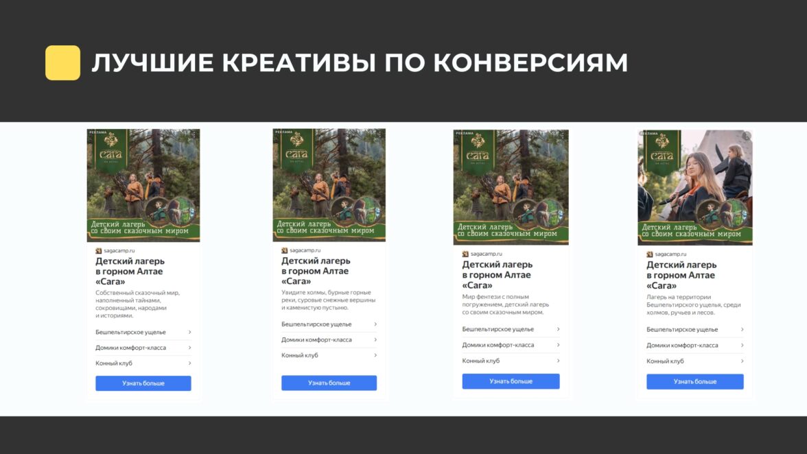 Цель — собрать лиды с помощью контекстной рекламы на программы лагеря.