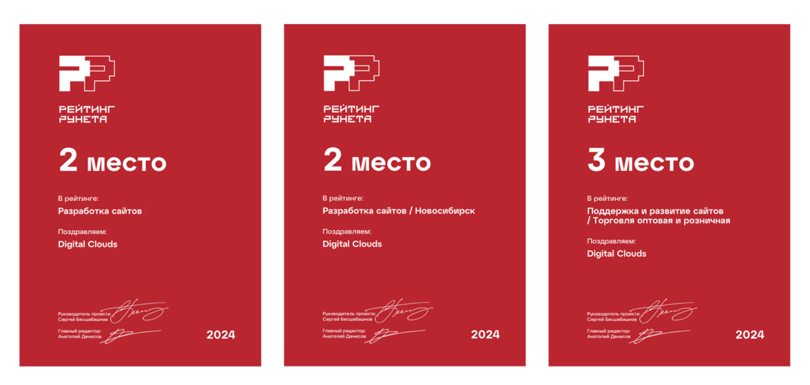 2 место в рейтинге «Ведущие веб-разработчики Новосибирска 2024»;