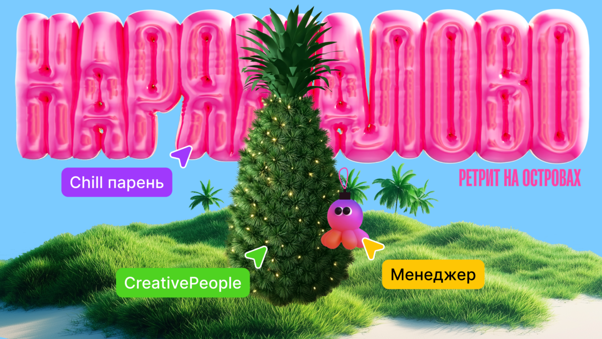 В этом году мы решили «отправиться» на жаркие ретрит-острова и поймать там дзен — такая концепция у Наряжалова-2025. Отключим телефоны, отложим рабочие созвоны и сделаем вид, что дедлайнов не существует, хотя бы на пару часов.
