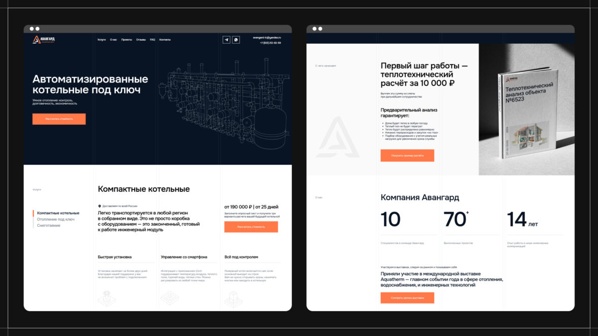 Так было с проектом «Авангард» — автоматизированных котельных «под ключ». Сайт заказчика устарел и проседал в конверсии. Мария порекомендовала нас заказчику — Ивану, и сразу предупредила, что тематика сложная. Сложность бизнеса в том, что обычно покупатели ориентируются на готовые решения для дома, здесь же решения сборные. Система снеготаяния — индивидуально проработанное решение от «Авангарда», которое зависит от дома и внешних условий.