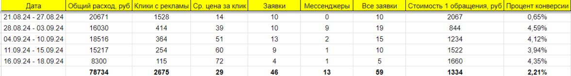 Заранее определили с клиентом, что аналитика настроена неполноценно (не было динамического коллтрекинга и чат трекинга по мессенджерам), поэтому стоимость обращения может быть выше желаемой.