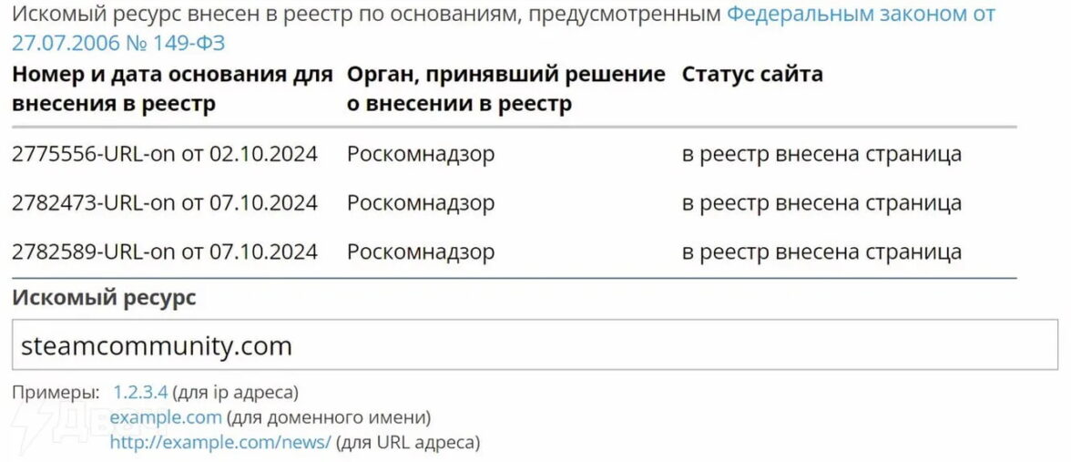 РКН еще не исчерпал возможности вызвать гнев игрового сообщества. Недавно в реестр запрещенных сайтов попали несколько страниц с форума игрового магазина Steam — steamcommunity.com. Как сообщается в базе реестра блокировок РКН, эти страницы были заблокированы на основании федерального закона «Об информации, информационных технологиях и защите информации» 149-ФЗ. Судя по опубликованной информации одна страница была заблокирована 2 октября, в еще две 7 октября.