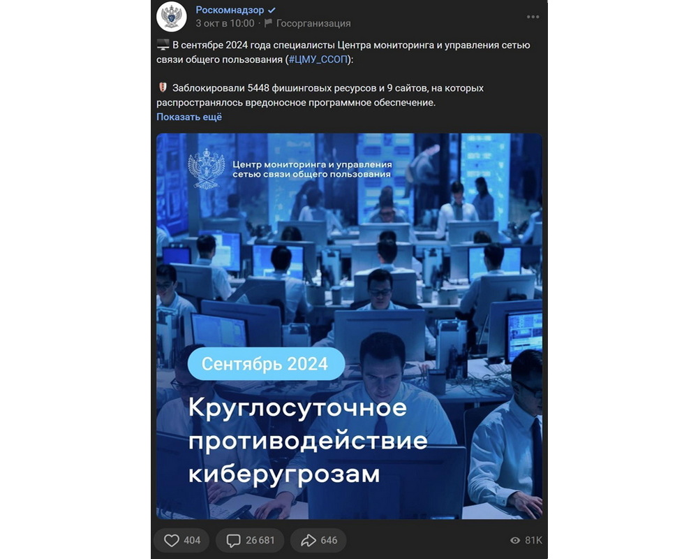 РКН быстро отбился от вечерней DDoS-атаки 8 октября 2024 года