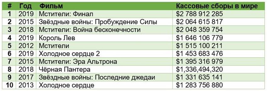 Топ и антитоп диснеевских фильмов по кассовым сборам