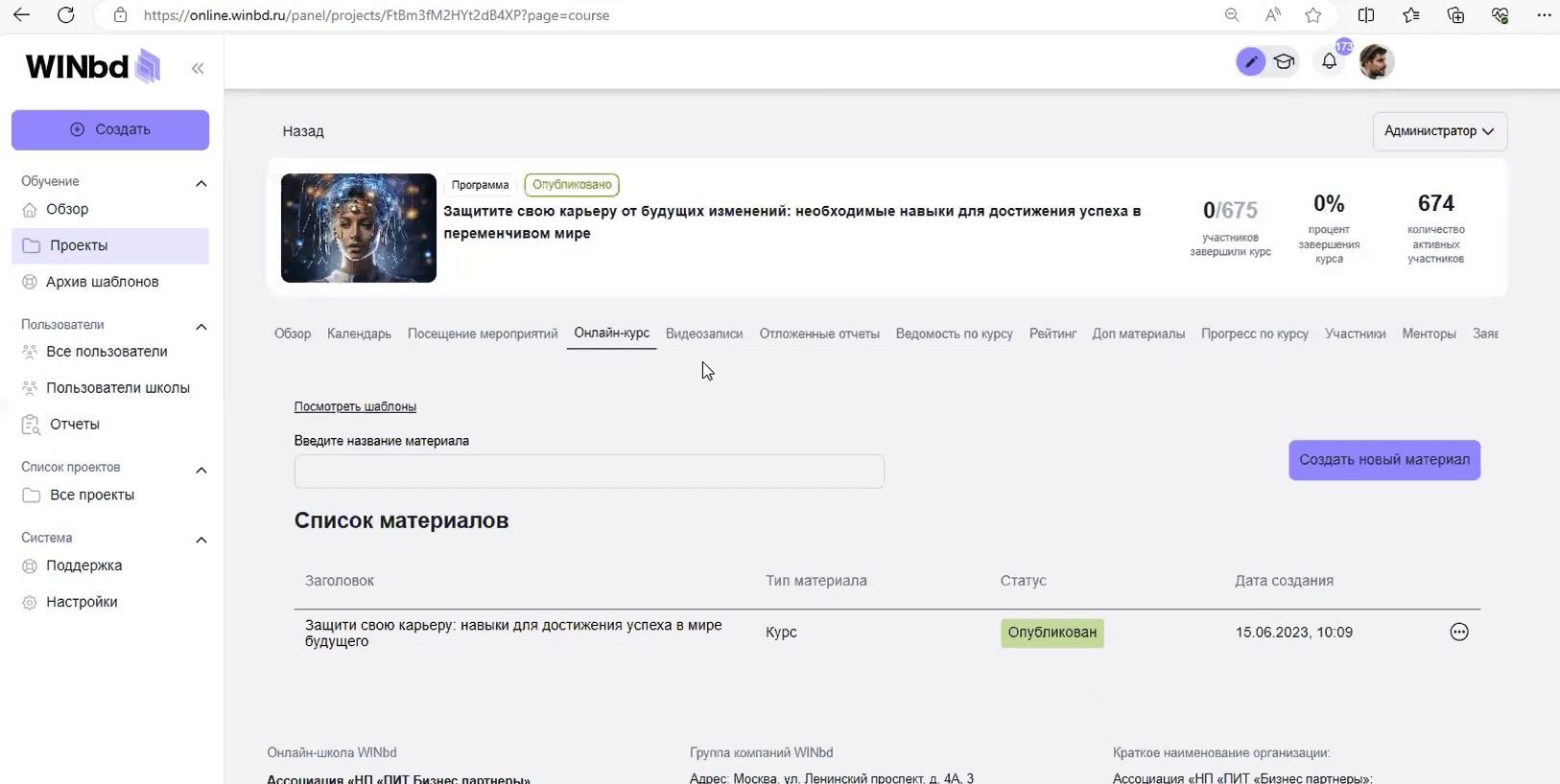 Таким образом на платформе Distant Global можно переупаковывать устаревшие курсы: наполнять их актуальной информацией и даже менять целевую аудиторию (показали на примере онлайн-школы WINbd)