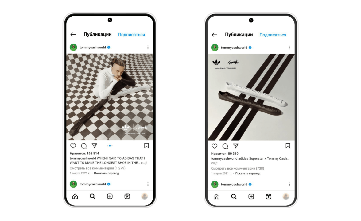Суммарно посты с коллабом Томми Кэша и adidas собрали более 248 тысяч лайков*