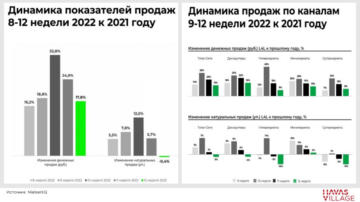 Банк России с 11 апреля снижает ключевую ставку: с 20 до 17% годовых. Решение было принято на внеочередном заседании совета директоров. Некоторые банки еще до этого начали снижать ставки по вкладам, а теперь приступили и к снижению ставок по кредитам. Также более заманчивыми стали и инвестиции в ценные бумаги, об этом рассказали в Российской газете. В марте сделок с ипотекой на вторичном рынке жилья по новым условиям почти не было, об этом говорят данные опроса Frank Media. Так, например, у «Инкома» и «Миэля» продажи по ипотеке были единичными. Вторичное жилье покупали лишь те, у кого ранее были одобрены заявки с низкими ставками. Рынок ещё не в полной мере ощутил влияние заградительных ставок, но просадка по продажам будет видна уже в апреле, считает директор по маркетингу федеральной компании «Этажи» Юлия Бочарникова. Также в стране готовятся вводить новые типы финансовых активов. Госдума может до конца весенней сессии, то есть до 31 июля 2022 года, принять поправки в Налоговой кодекс, предусматривающие признание криптовалют имуществом, об этом газете «Известия» рассказал глава комитета нижней палаты парламента по финансовому рынку Анатолий Аксаков. На сегодняшний день легализация оборота криптовалют рассматривается как один из способов обхода санкций. Банкам стоит ознакомиться с техническими особенностями этого вида активов, чтобы при появлении правовых норм быть готовыми оказывать клиентам услуги в этой категории. Динамика продаж на рынке FMCG продолжает замедляться — по данным Nielsen IQ, на 12 неделе марта (21–27.03) продажи в натуральном выражении сократились на 0,4% по сравнению с предыдущей неделей. Самая высокая динамика продаж в денежном выражении наблюдается у дискаунтеров, а положительная динамика натуральных продаж сохраняется только у минимаркетов. Также, по результатам экономического мониторинга «Новая реальность», проведённого Ipsos в России впериод с 3–9 марта, 86% опрошенных заметили рост цен. На фармацевтическом рынке России продажи лекарственных средств продолжают падать, в то время как общий спрос на рынке еще сохраняет положительную динамику, об этом сообщили в ТАСС со ссылкой на данные DSMGroup.После того, как фарм-рынок столкнулся с дефицитом из-за ажиотажного спроса, российские производители начали активно развивать импортозамещение. Так, например, Минздрав зарегистрировал отечественный жизненно важный препарат для лечения щитовидной железы «L–тироксин». Производство запустят на базе российской компании Renewal в течение месяца. Первая партия составит около 200 тысяч упаковок. В перспективе компания планирует выйти на объем до 1 млн упаковок в месяц, говорится в материале Business FM.