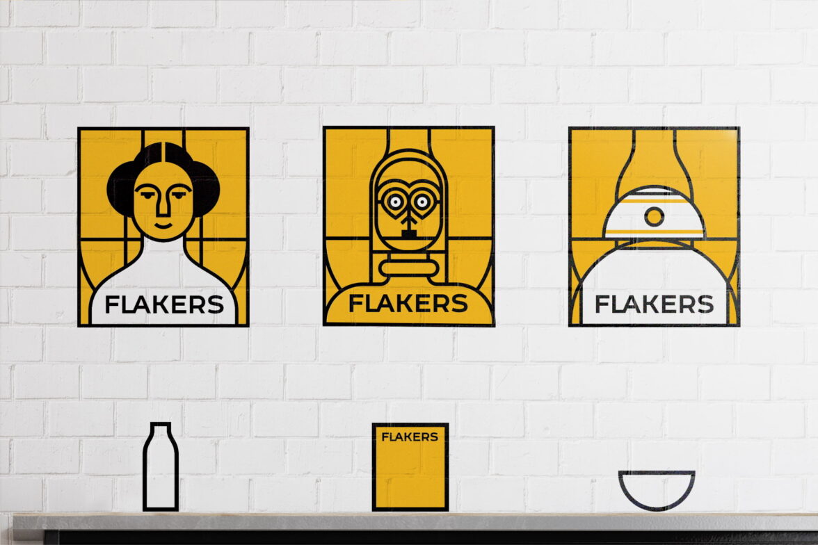 Желтые краски на логотипе передают бодрость и жажду жизни, с которой Flakers подходят к своей работе, а белый традиционно символизирует чистоту намерений и уважение к каждому клиенту.