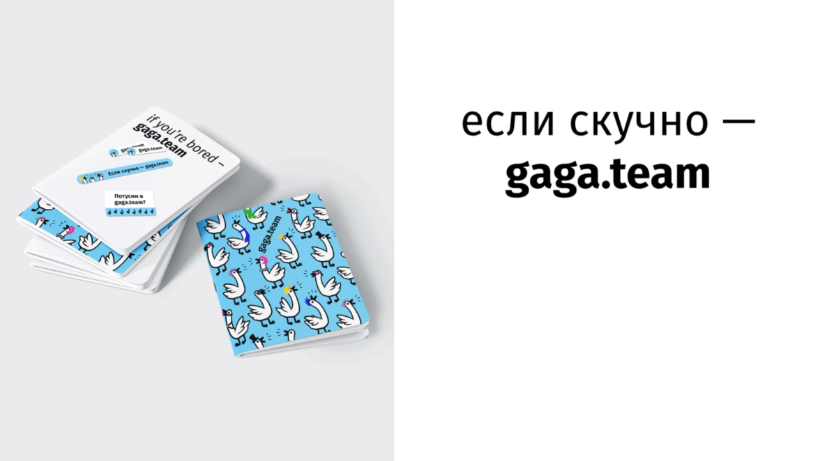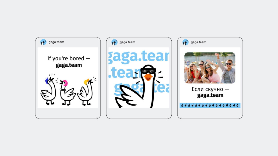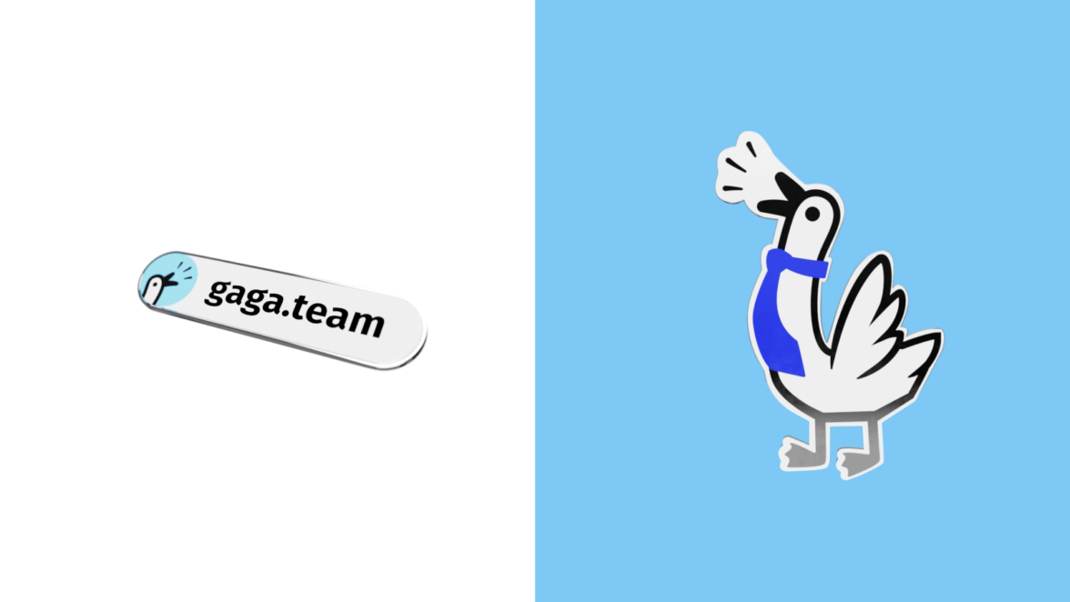 В основу логотипа лёг прямой образ гусей, которые гогочут. Чтобы отразить суть сервиса, что в gaga.team приходят люди с абсолютно разными интересами, мы добавили в логотип несколько деталей.