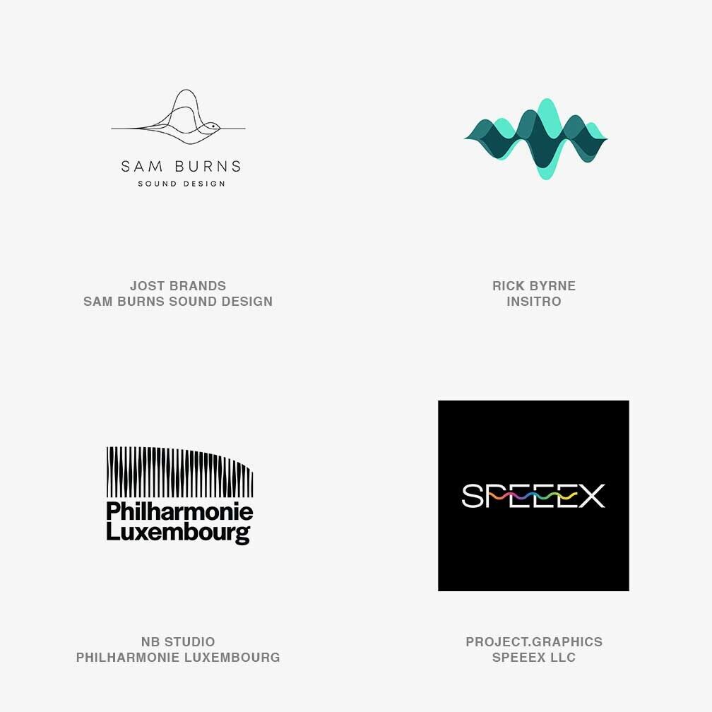 Масштабируемость логотипов по-прежнему остается проблемой, но негативное пространства между линиями волн помогает многим дизайнерам решить эту проблему. Посмотрите, что может звуковая волна, как базовый элемент воплотиться в разных исполнениях: