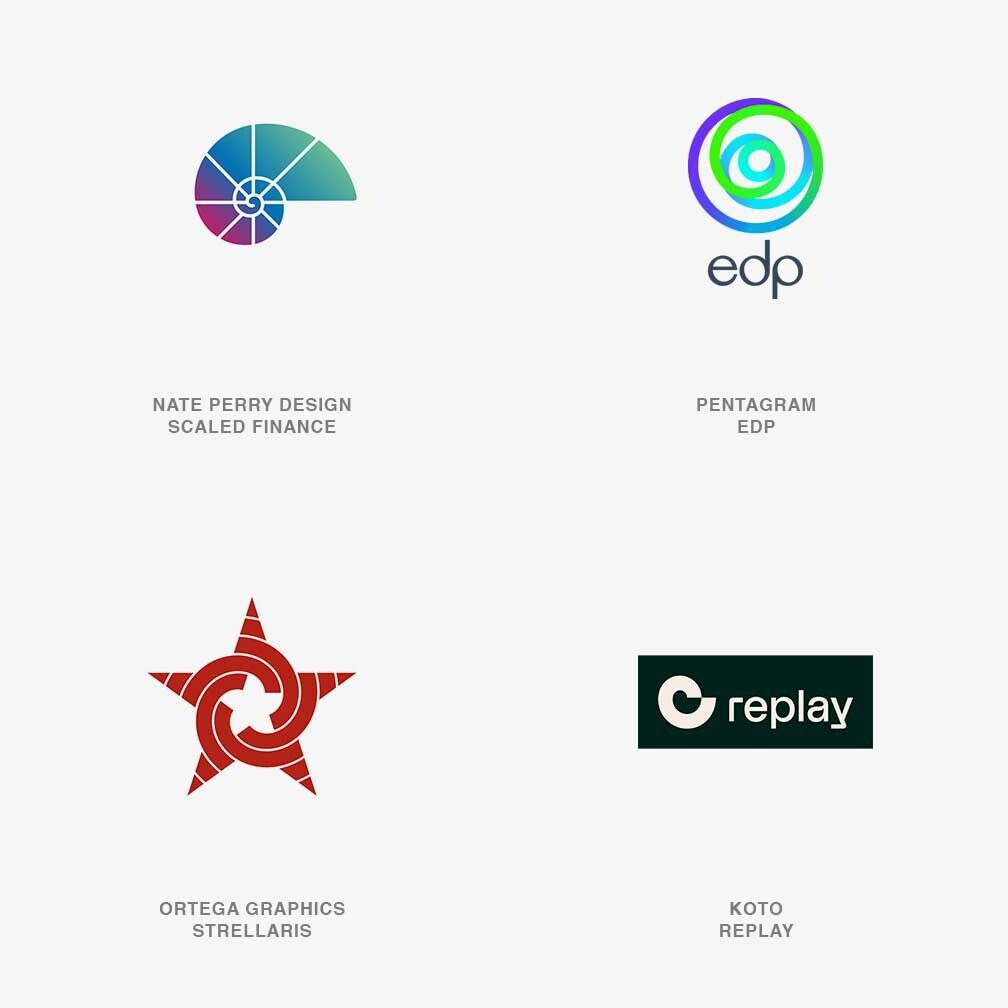 В основе представленных логотипов лежит форма спирали или её элементы. Этот прием объединяет все знаки в единый визуальный тренд