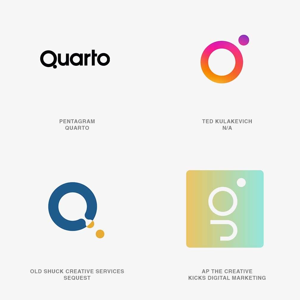 Логотип от дизайнеров Pentagram для «Quarto» состоит из двух тесно соприкасающихся окружностей разного размера и образующих букву «Q».