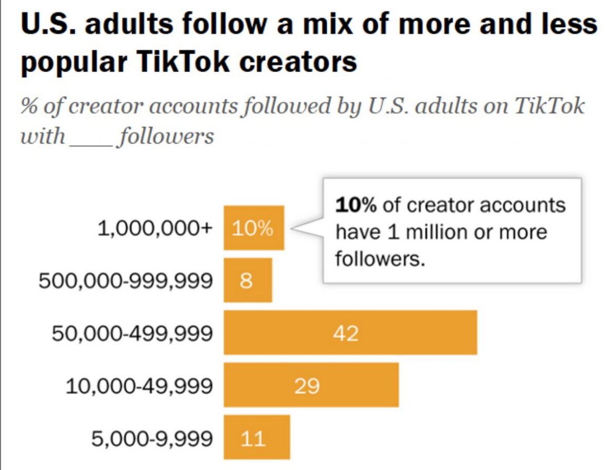 Центр Pew провел исследование, чтобы лучше понять, за какими авторами контента следят пользователи в США и как стать популярным в TikTok. В ходе исследования были проанализированы предпочтения 664 американцев старше 18 лет.