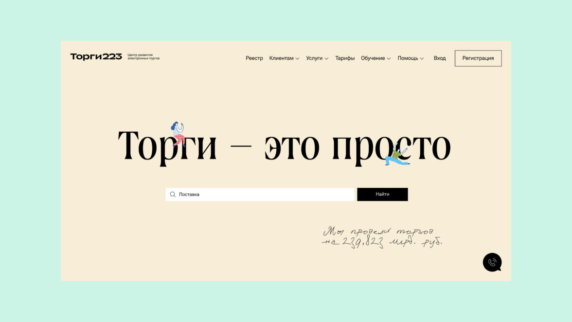 «Торги 223» — электронная торговая площадка, одна из лидеров по количеству сервисов для заказчиков в рамках Федерального закона № 223-ФЗ. Компания обратилась к нам, чтобы привлечь как можно больше заказчиков, сократить дистанцию с клиентом через понятный UX и обновить стиль в связи с новой айдентикой. В проекте участвовал продакт и вот какие его решения привели к нужному нам результату: