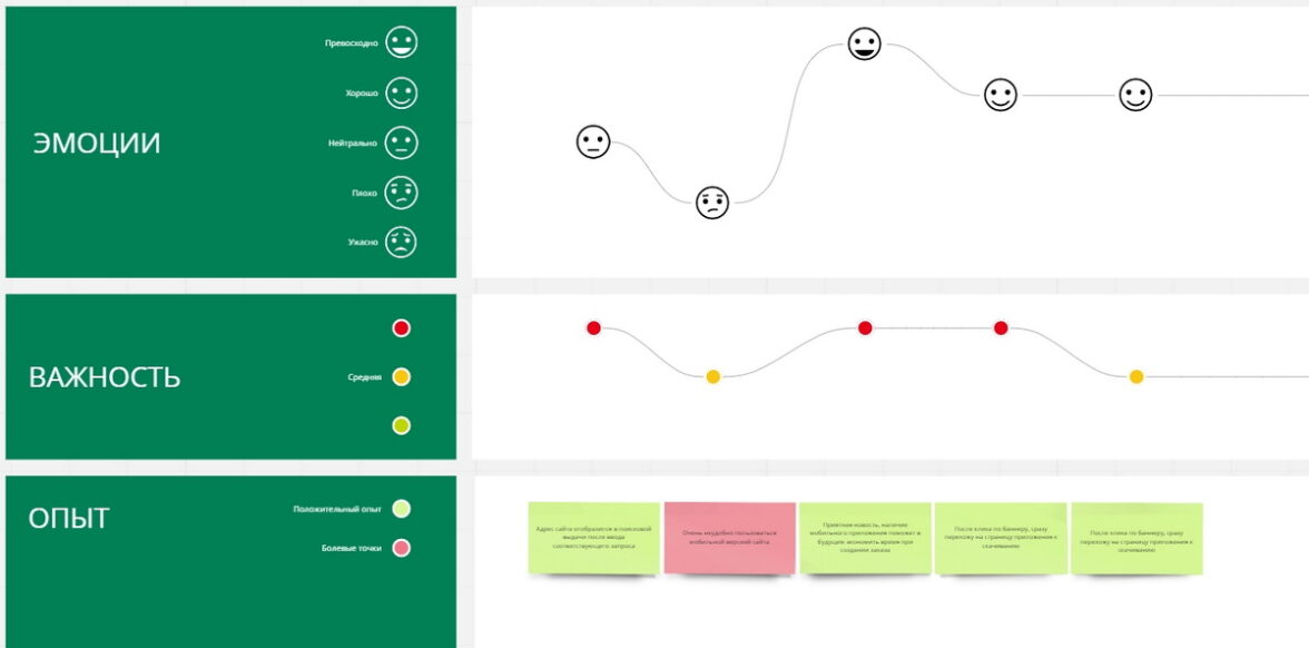 4. Отсутствие эмоциональной составляющей. На карте должны быть отображены эмоции клиента для каждого шага, иначе она не даст полной картины.