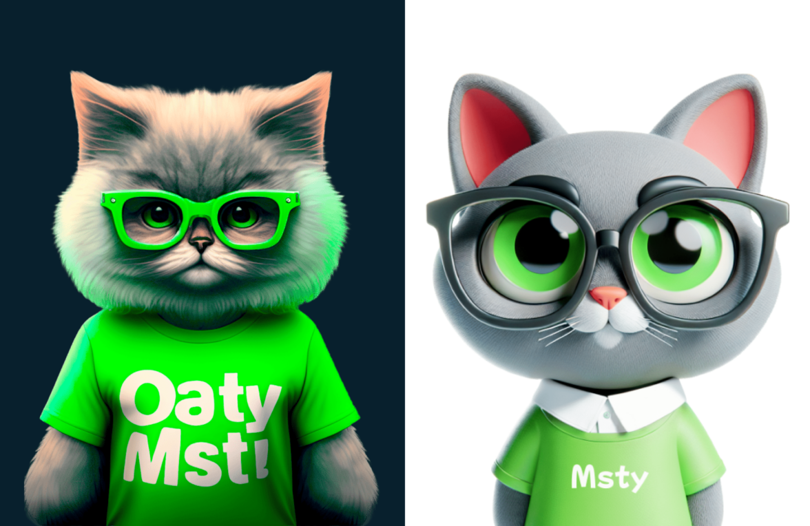 Помимо этого, мы решили обновить и маскота. Но пока думаем, стоит ли заменять нашего кота Мисти, к которому мы и наши пользователи уже привыкли, на его новый 3D-облик. Так же как и первого Мисти, новую версию кота мы создали в Aigital, но уже в новом навыке «3D-персонаж». Сейчас наши пользователи видят обе версии — на посадке посетителей встречает пушистый Мисти, а в личном кабинете обитает 3D-шный Мисти 2.0.