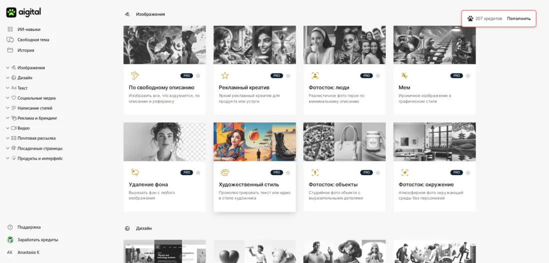 Нам очень помогает ваша обратная связь, когда вы пишете об ошибках, невозможности сгенерировать контент, задаете вопросы. Несмотря на то что мы сами пользуемся Aigital, привыкнув у сервису, можем не чувствовать каких-то моментов, которые неудобны и ненативны для нового пользователя.