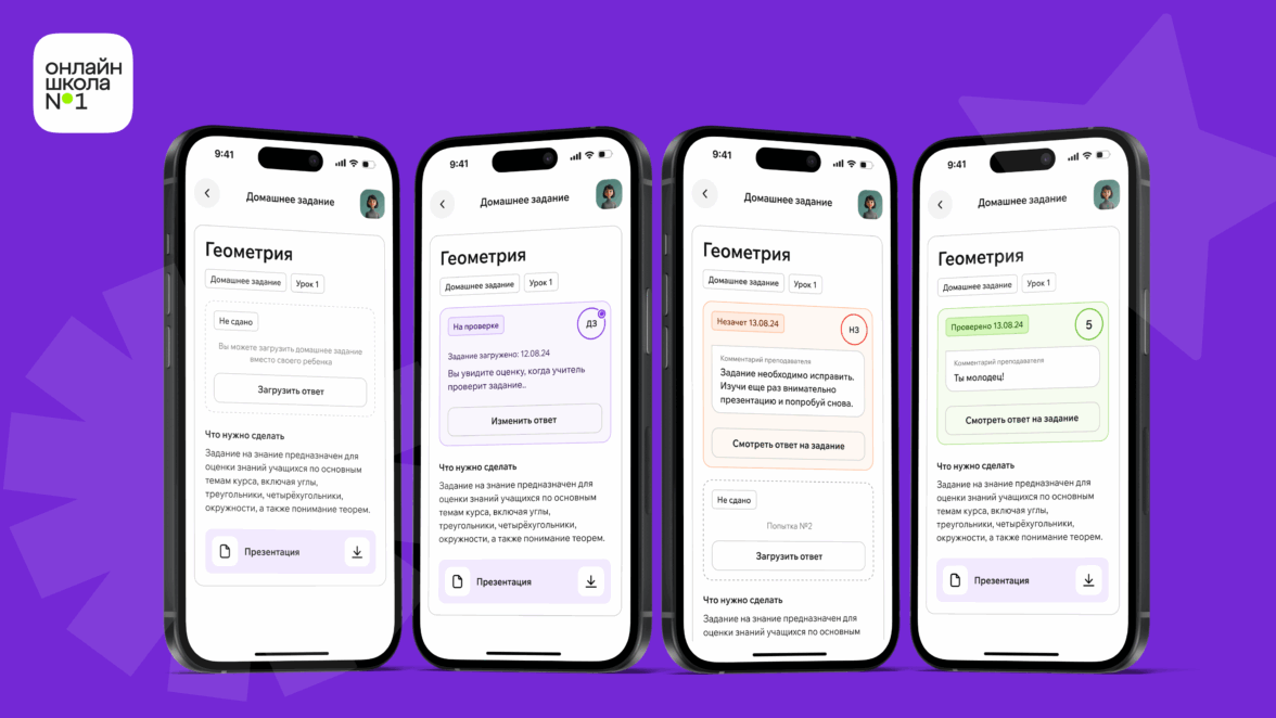 Здесь нужно было не просто отобразить данные, а аккуратно показать большое количество статусов и иконок: «на проверке», «сдано», «не сдано», «зачёт», «незачёт» и так далее. Каждую иконку рисовали отдельно, синхронизировали с системой и проверяли, чтобы в приложении родитель видел только актуальное состояние задания. Работа была ювелирная — любое несоответствие могло запутать пользователей.
