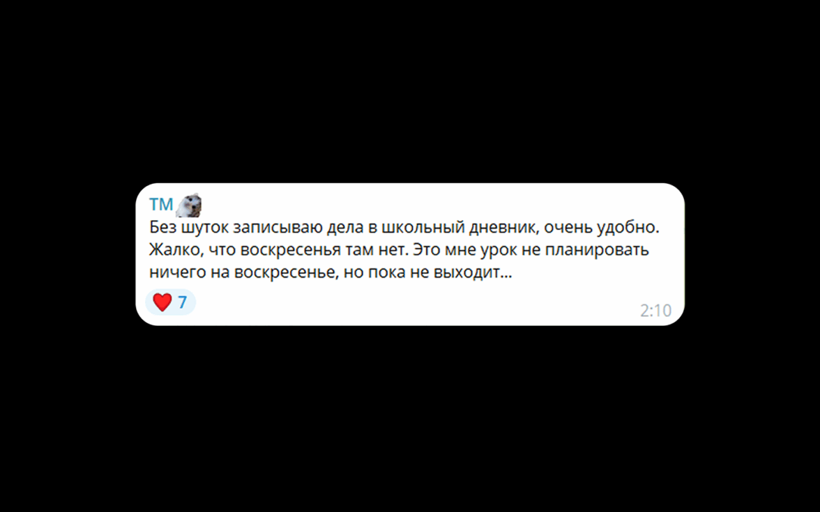 Это обратная связь от читателей одного из каналов — кто-то и правда использует школьный дневник как планировщик