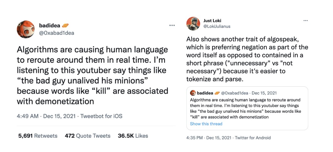 По словам управляющего директора по дата-решениям Telus International Ханны Шивон, которые приводит Forbes, algospeak чаще всего используется для обхода правил, запрещающих оскорбления, разжигание ненависти, включая домогательства и издевательства.