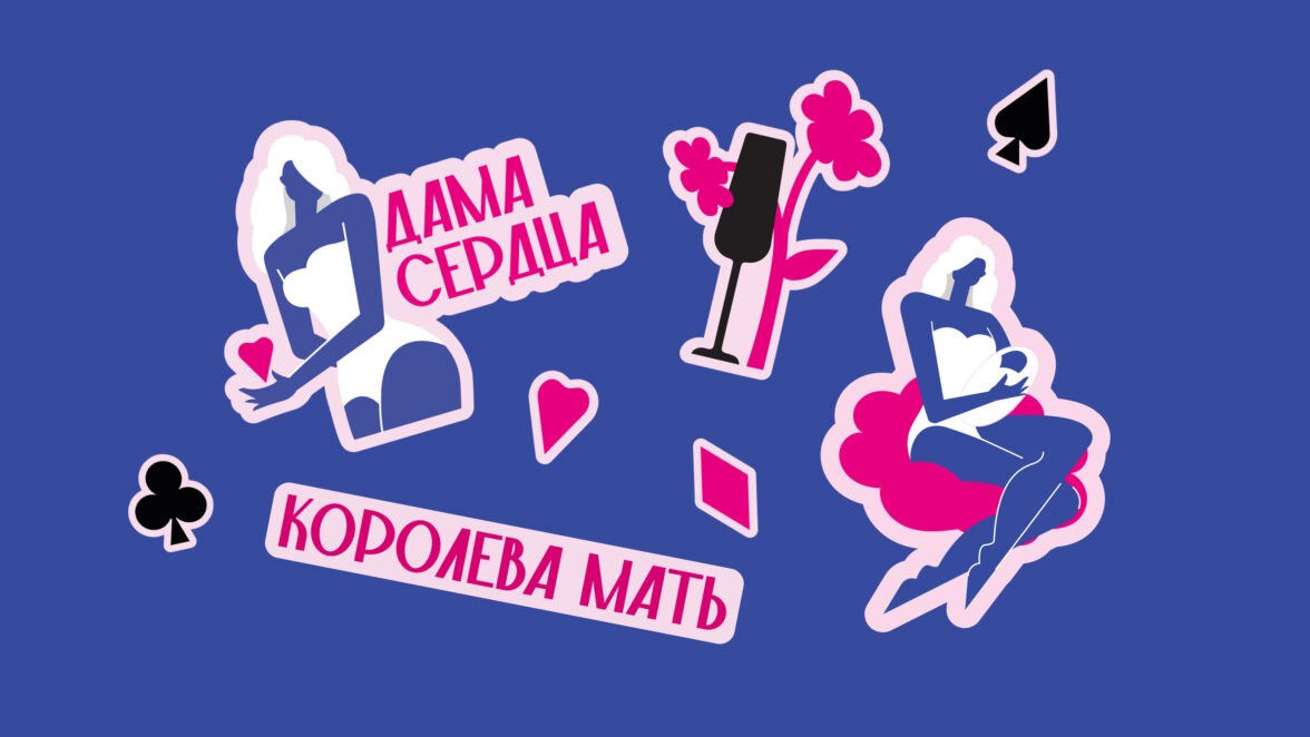В процессе работы над проектом получилось шесть концепций, из которых в итоге остановились на одной — идее ролей и мастей. Каждое утро женщина прислушивается к себе и выбирает, какое амплуа ей по душе: Королева Мать, Алмазная Леди или Мама на пике. Её жизнь полна неожиданностей, она живет «как карта ляжет»: сегодня — величественная Королева, а завтра — авантюристка Алиса в Стране чудес. Или все одновременно. Мы придумали фразы, визуальное оформление и добавили игру слов. Также создали смешные и стильные стикеры-наклейки.