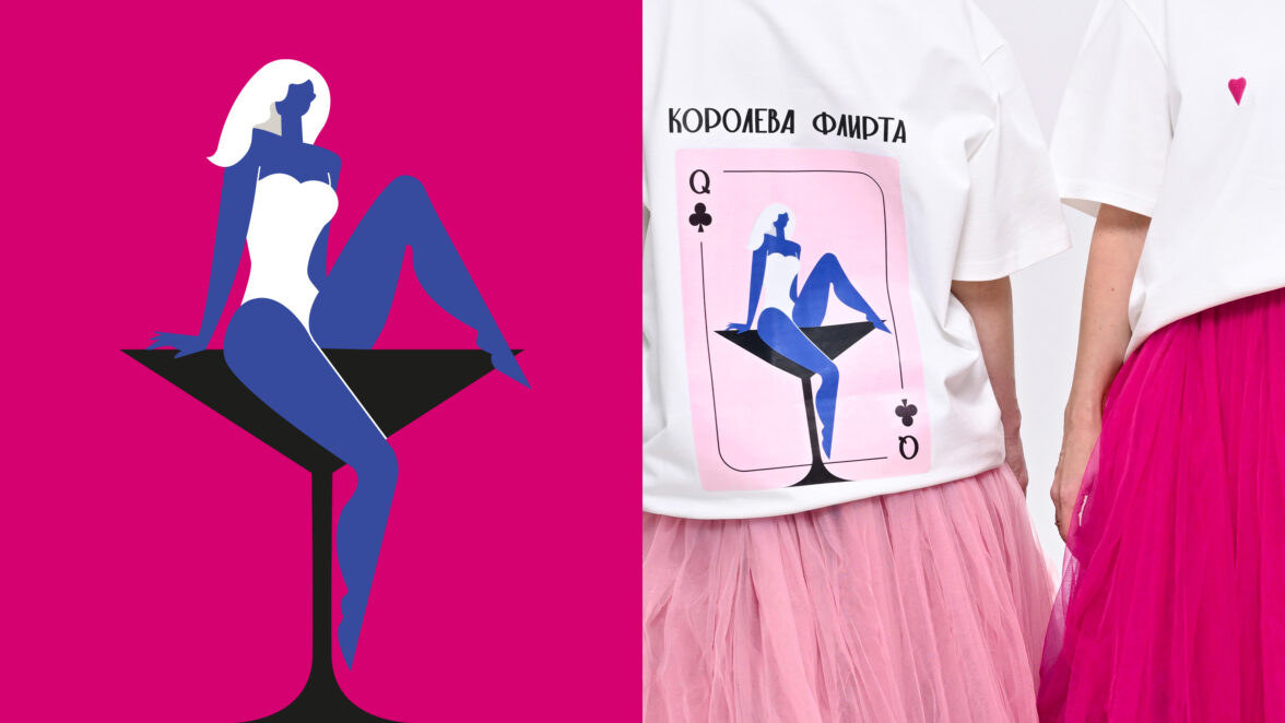 Такая эстетика была выбрана не случайно, хотелось сохранить деликатный юмор и яркую привлекательную рисовку в стиле постерной графики и винтажа. Леди изображены в цветах или на подиумах в виде бокалов, что добавляет идее легкой «дерзости» и еще больше привлекает внимание: такой мерч хочется носить, обсуждать с подругами и смеяться над точными жизненными фразами.