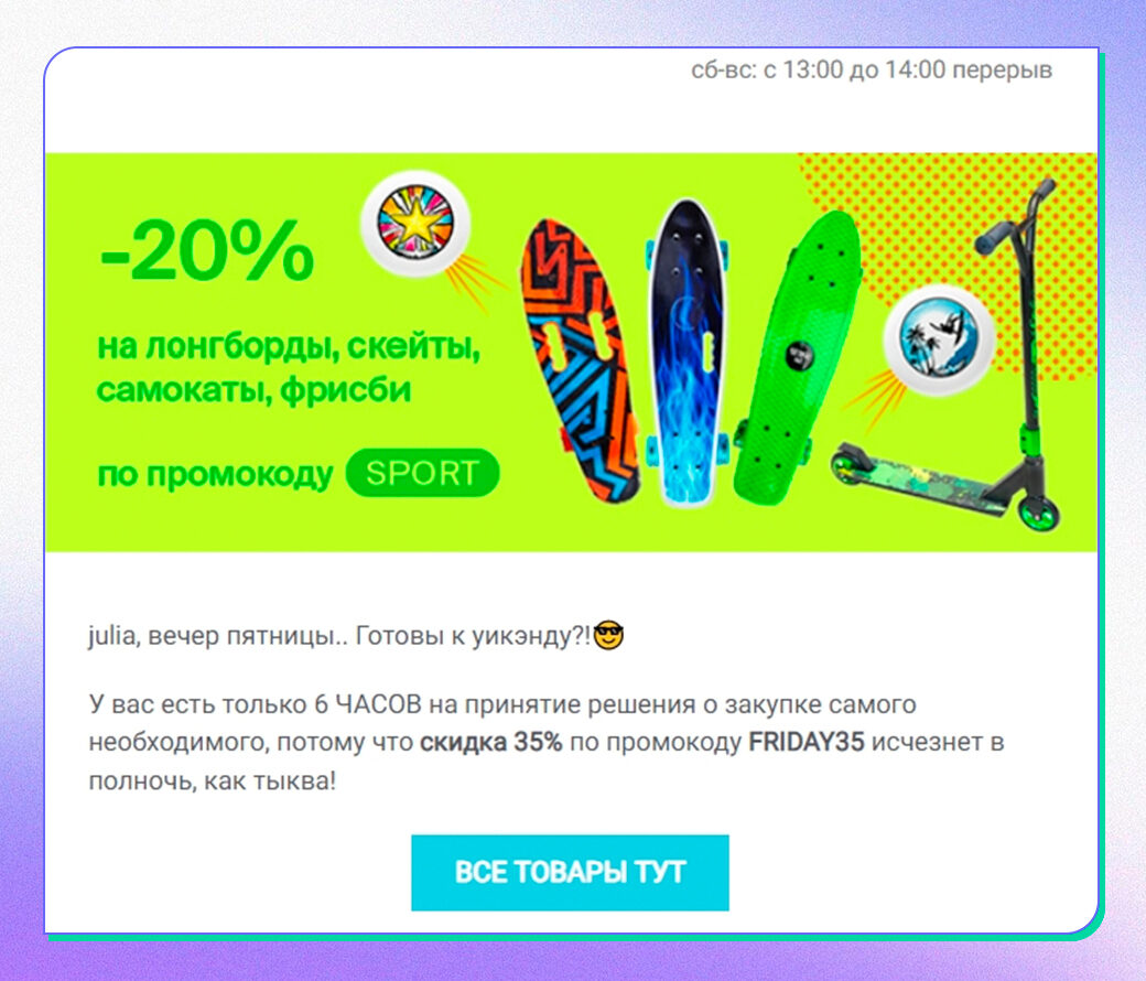 Напоминают о важных для потребителя явлениях — цикличных покупках, персональных мотивационных предложениях;
