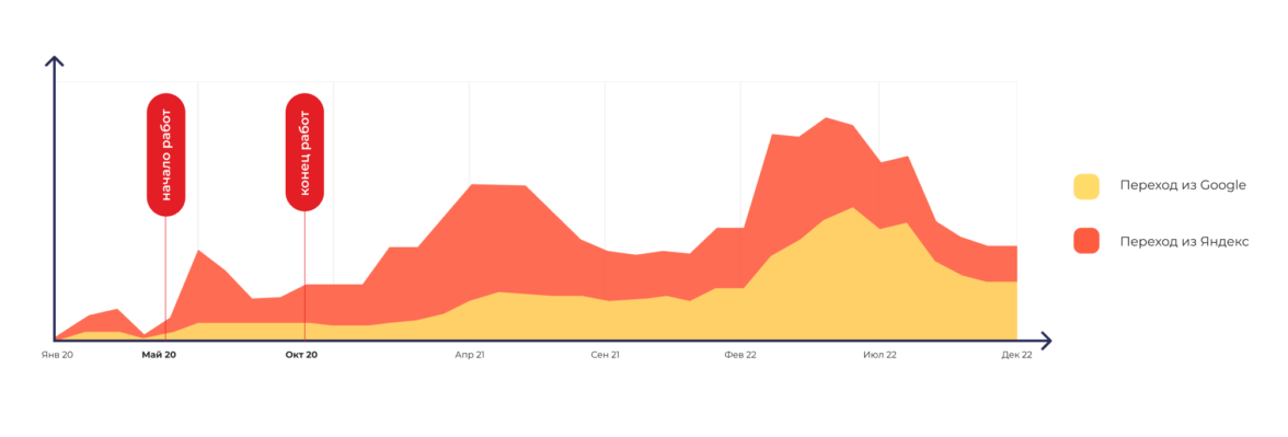 График № 6. Поисковый трафик из Яндекса и Google 2020−2022