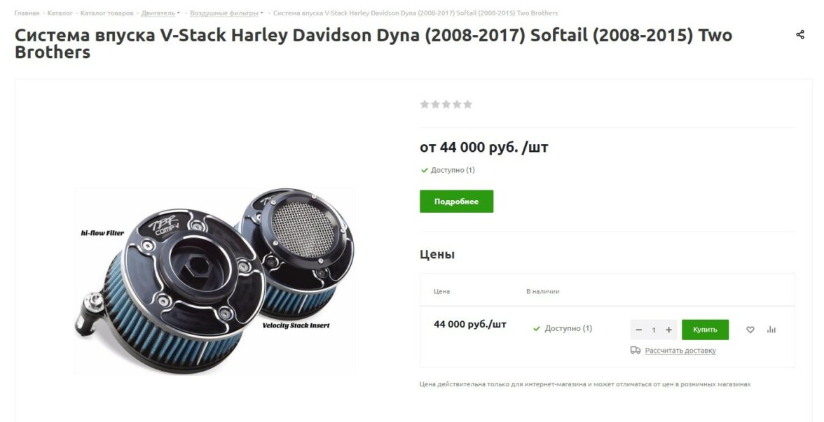 Добавили блок «Подходит на следующие мотоциклы» на страницу товара (Скриншот № 7). Цель — перелинковать с разделом запчастей под определенную марку и модель мотоцикла. Посетитель может перейти на такую страницу и увидеть, какие еще запчасти можно приобрести для своего железного коня.