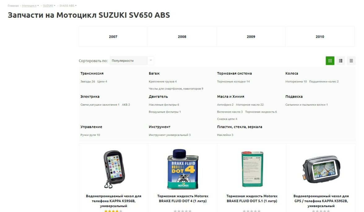 Большая база запчастей, в которой отмечена их применимость к модели мотоцикла — это большая редкость. Заказчиком была проделана огромная работа по сбору и внесению данных на сайт. Грамотное использование этих данных привело к отличным результатам!
