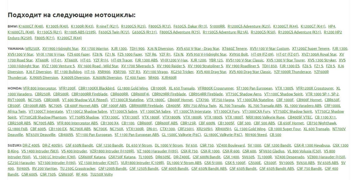 Скриншот № 7. Блок «Подходит на следующие мотоциклы»