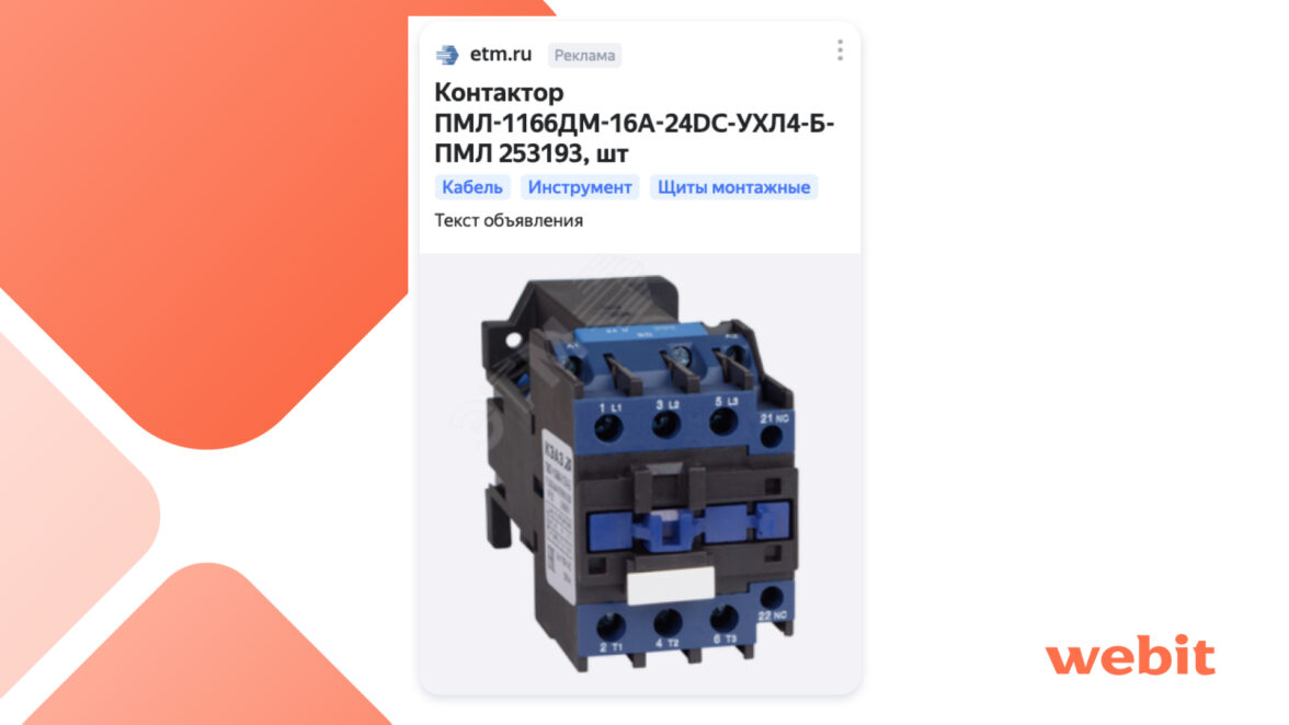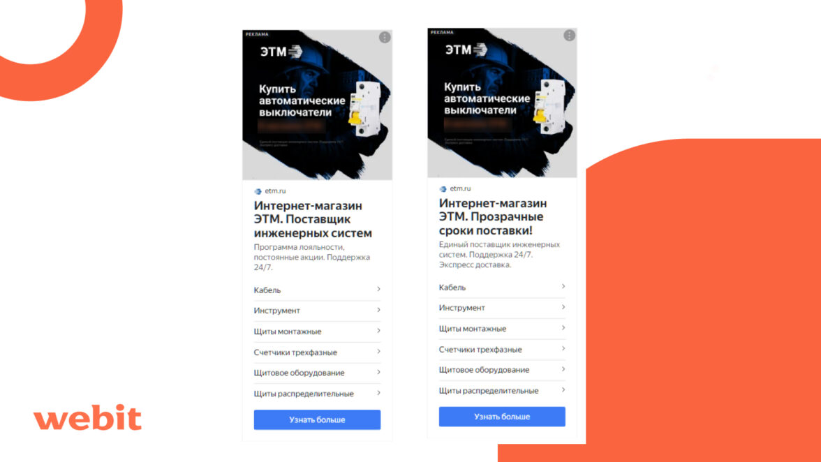 С проблемой продвижения товаров на специфическую аудиторию столкнулся магазин ЭТМ, поставщик инженерного оборудования, который искал покупателей для новой продукции: низкочастотного, светотехнического оборудования и установочных изделий общего назначения. За решением этой задачи компания обратилась в агентство Webit.