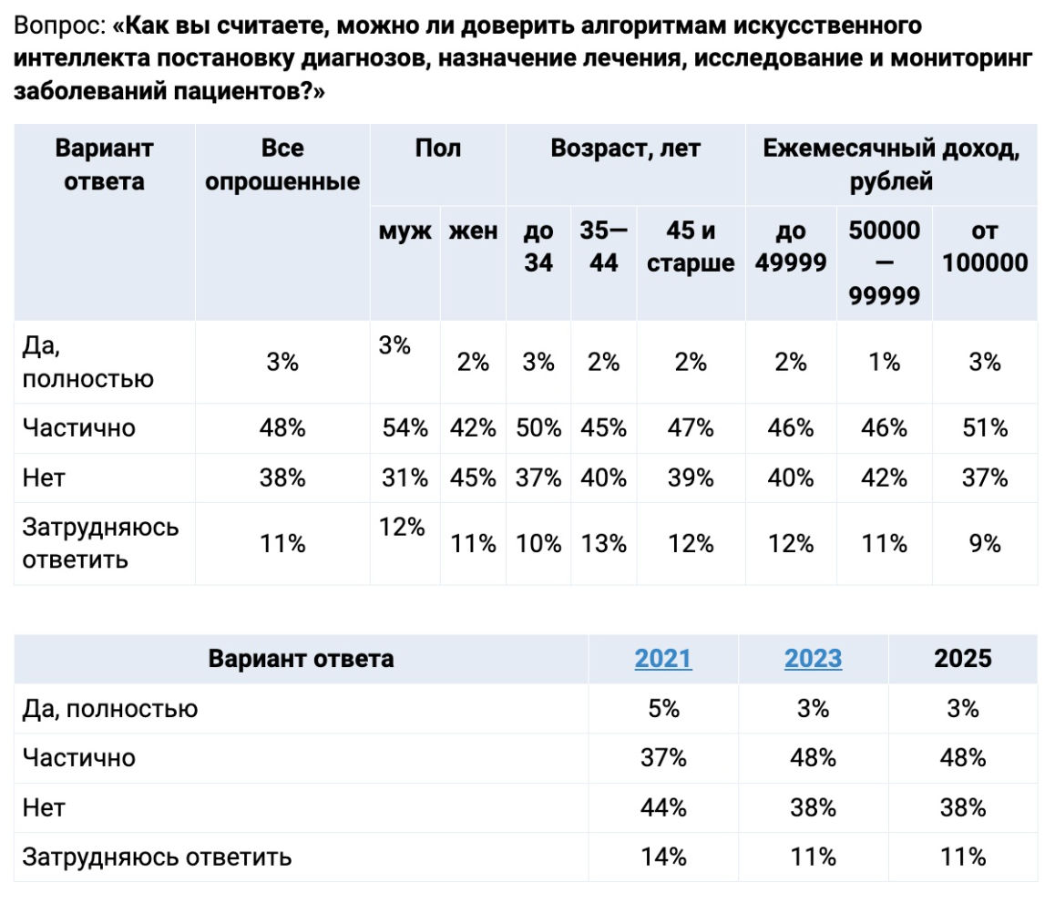 Сколько россиян готовы доверить свое здоровье алгоритмам ИИ