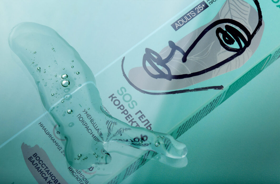 Проект получился многоступенчатым, потребовал несколько подходов и поиска стиля. Основные особенности марки — новаторский подход, объединение достижений науки и природы, выход за рамки привычного. Идеальным решением оказалось использование контурной иллюстрации лица, ведь архетип бренда — творец, рисуя, ты как бы создаешь себя. Это ключевой месседж, транслируемый упаковкой. Авторские иллюстрации выполнены единым движением кисти, это придает экспрессию и создает уникальный стиль.