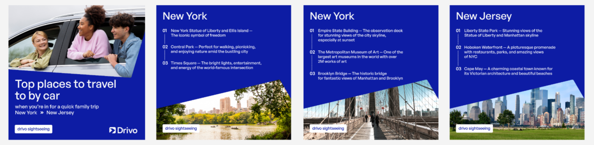 Drivo — сервис аренды автомобилей, работающий в Нью-Йорке и Нью-Джерси, с пунктами выдачи в аэропортах Ньюарка (NJ), JFK (NY), ЛаГуардиа (NY), а также в Бруклине. Компания выделяется широким выбором автомобилей, простотой оформления аренды и высоким уровнем сервиса.