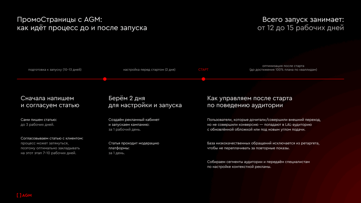 как проходит запуск ПромоСтраниц с AGM и как мы оптимизируем кампании уже после старта.