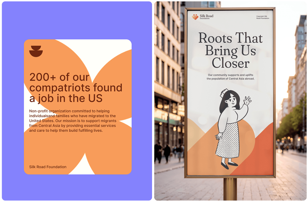 сделав его более теплым и поддерживающим. Главная идея проекта теперь выражена в новом слогане — «Where the roots begin». Он напрямую перекликается с названием фонда Silk Road («Великий шелковый путь») и символизирует начало новой главы в жизни подопечных. Слоган доносит важный смысл: именно этот фонд поможет вам адаптироваться, а наше комьюнити станет вашим новым домом, где бы вы ни находились, даже на расстоянии тысяч километров от родины.