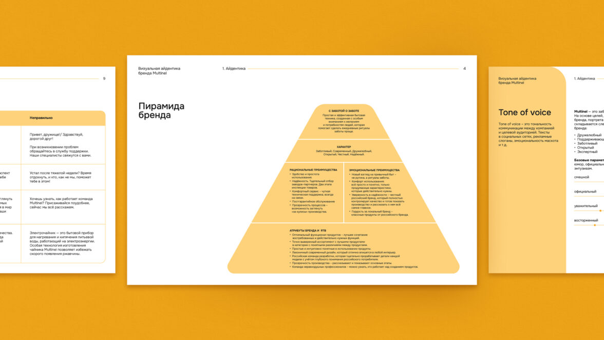 Продуктовые преимущества, предлагаемые Multinel, — понятный ассортимент, в котором каждый продукт имеет оптимальный функционал без необходимости в множестве однотипных моделей; интуитивно понятные в использовании механизмы и лаконичный дизайн. Все эти характеристики отвечают запросу аудитории на экономию времени, проявляя заботу о ней. Отталкиваясь от преимуществ продукта, DS1 branding определили роль бренда Multinel, его характер и тональность.