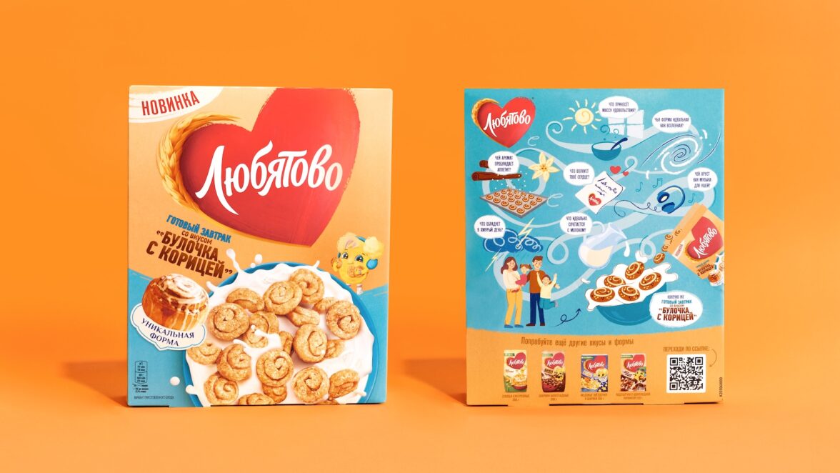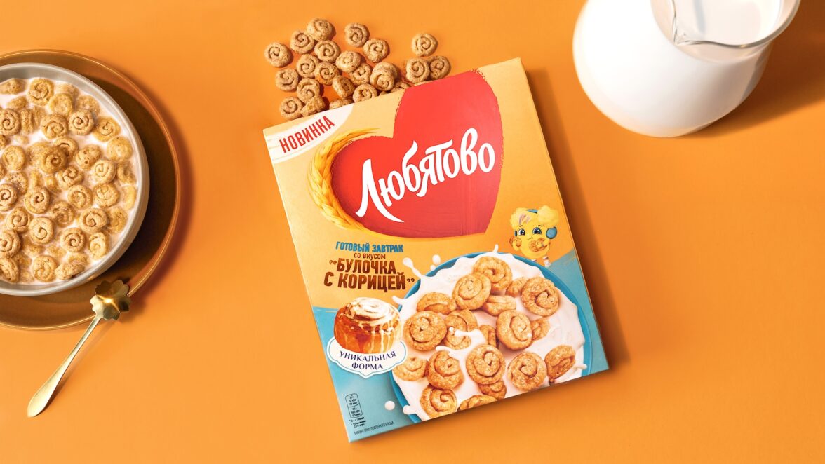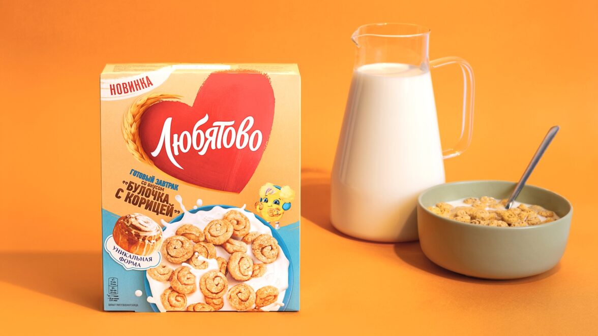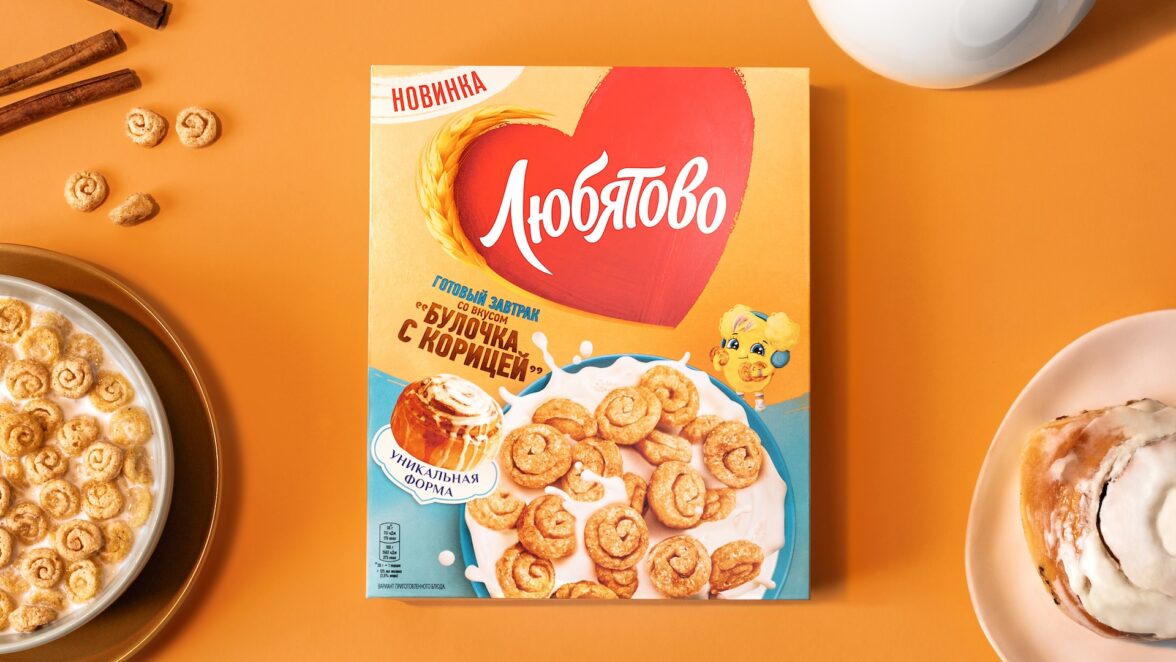 DS1 branding сопровождает бренд «Любятово», и в этот раз задачей агентства стала разработка имиджа нового, уникального для российского рынка вкуса готовых завтраков — «Булочка с корицей».