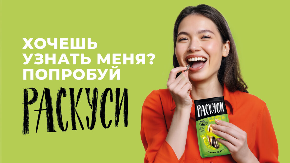 Легенда бренда усилила этот баланс: она говорит о том, что на смену традиционным семечкам приходят «Раскуси», уже в новом прочтении. Каждая пачка — это новый яркий вкус, а чтобы прочувствовать его, нужно раскусить семечку и добраться до ядра. Перекус словно бросает вызов: «Хочешь узнать меня? Попробуй “Раскуси”.