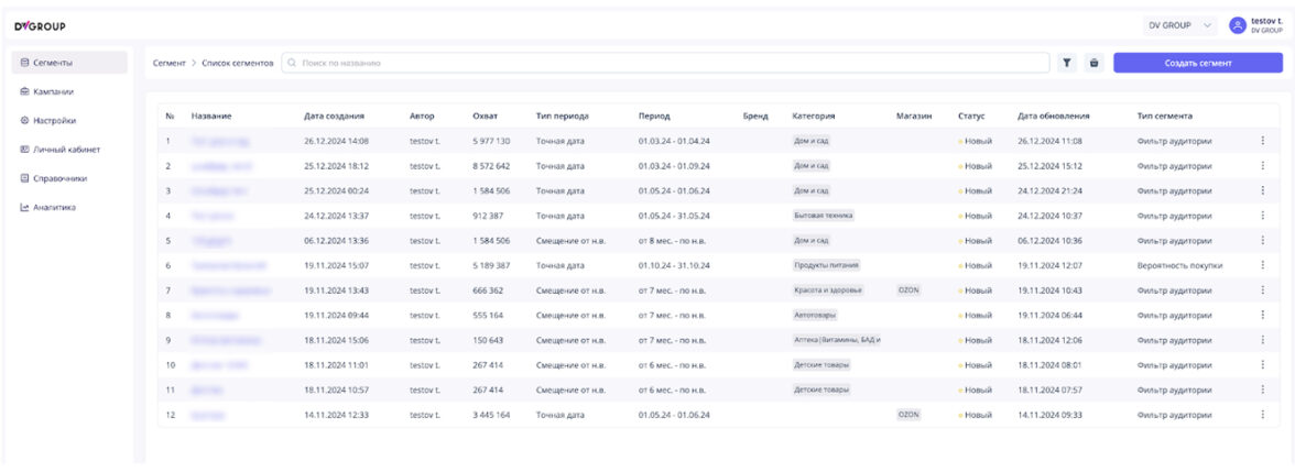 *пример готовых сегментов в рекламном кабинете DV Platform
