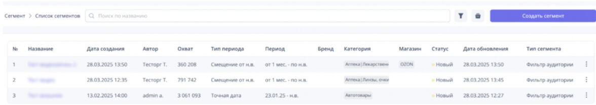 Сегменты — создавайте и настраивайте целевые аудитории на основе реальных покупок.