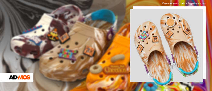 Crocs любит самые неожиданные коллаборации: вместе с корпорацией по производству продуктов питания General Mills бренд представил коллекцию с фирменными завтраками. Сабо, украшенные тематическими джиббитсами, выполнены в цветах, которые показывает, какие именно продукты вдохновили дизайнеров на модные шедевры.